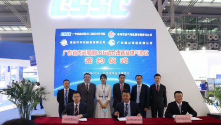 2020年5月,中國船舶集團聯(lián)合中國海洋石油集團有限公司與廣東省人民政府簽署了《廣東省內(nèi)河船舶LNG動力改造項目合作框架協(xié)議》。本次海博會上,中國船舶集團旗下廣州船院與合作伙伴隆重舉行“廣東省內(nèi)河船舶LNG動力改造及供氣協(xié)議”簽約儀式。該項目的簽約是推動廣東省內(nèi)河航運綠色發(fā)展的重要開端,是優(yōu)化水運行業(yè)用能結(jié)構(gòu),實現(xiàn)轉(zhuǎn)型升級的重要舉措。