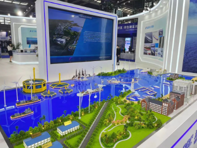 # 10萬噸級大型深遠海養(yǎng)殖工船、2000噸自升自航式風電安裝平臺、耕海一號二期工程等模型以及“藍色海洋經濟綜合體”沙盤,生動展示出“深海養(yǎng)殖+海上文旅+海上風電”互聯(lián)互通的繁榮業(yè)態(tài)景象;