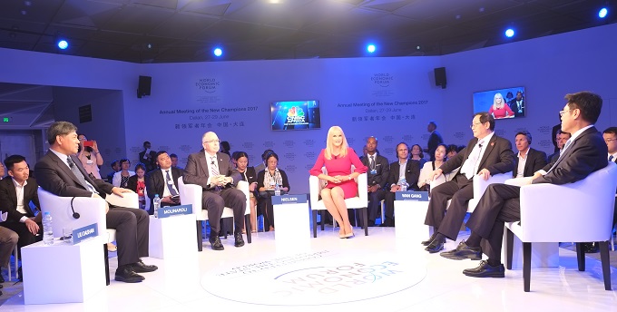 第11屆夏季達(dá)沃斯聯(lián)席主席、國家電網(wǎng)董事長(zhǎng)舒印彪?yún)⒓印耙I(lǐng)能源轉(zhuǎn)型”對(duì)話節(jié)目