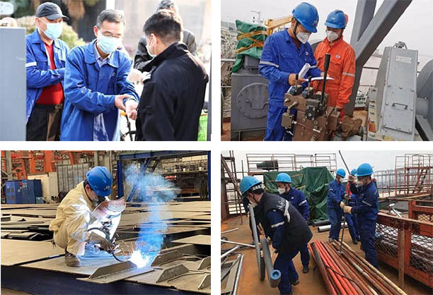 ????為順利復工復產,武船集團根據屬地疫情防控管理要求,結合企業經營生產實際,建立了疫情防控及復工復產相關制度,包括防控管理規定、使用健康碼等。公司還在所有工作、生活區域卡口前都設有測溫點,員工進入前必須測量體溫并登記。同時,對員工就餐采取分餐制、送餐制,確保廠區工作環境健康,職工身體健康。