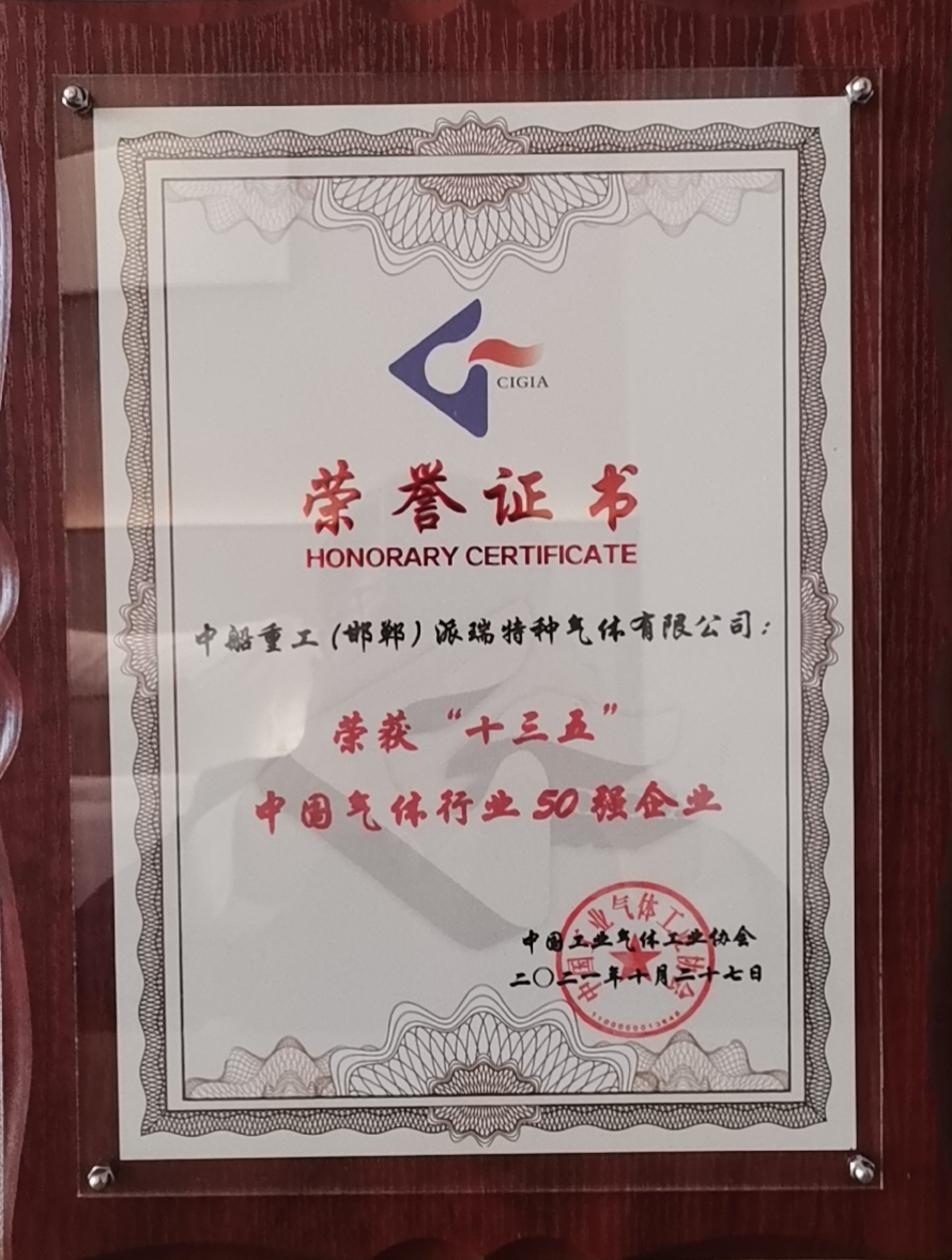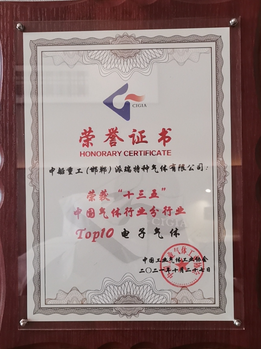 中國船舶集團旗下七一八所所屬派瑞特氣公司,近日榮獲中國工業(yè)氣體工業(yè)協(xié)會評選的“十三五”中國氣體行業(yè)分行業(yè)電子氣體10強、“十三五”中國氣體行業(yè)50強企業(yè)榮譽稱號,以及2021年氣體行業(yè)專利獎金獎。