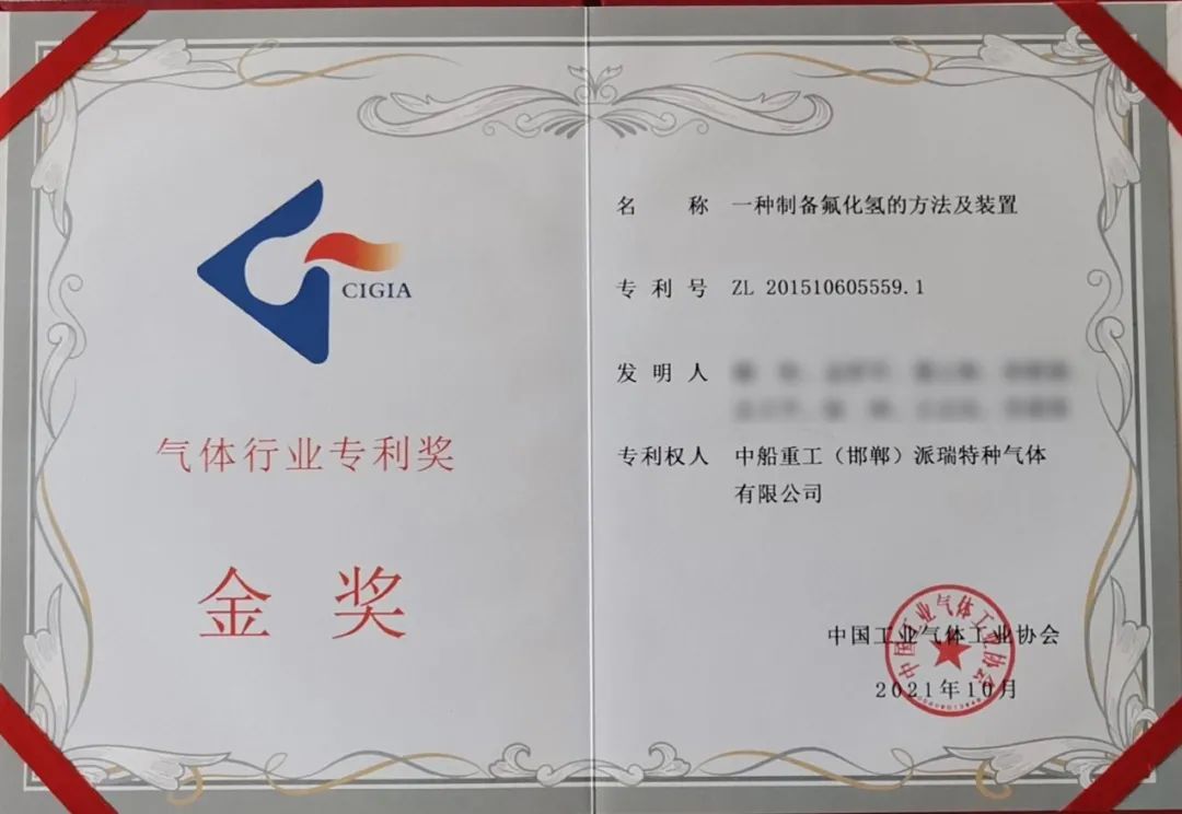 此次獲獎,是派瑞特氣公司繼2020年“一種制備三氟化氮氣體的裝置及應(yīng)用”專利獲評發(fā)明專利金獎后,連續(xù)第2年獲得該項榮譽。