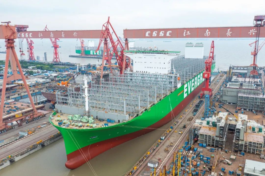 5月19日,中國船舶集團(tuán)旗下滬東中華雙喜臨門。其建造的全球最大裝箱量24000TEU超大型集裝箱船2號(hào)船在長(zhǎng)興造船基地順利出塢;建造的13000噸多用途重吊船12號(hào)船在浦東廠區(qū)命名交付,標(biāo)志著該項(xiàng)目圓滿收官。這是滬東中華自復(fù)工復(fù)產(chǎn)以來首次實(shí)現(xiàn)一天完成兩大生產(chǎn)節(jié)點(diǎn)。