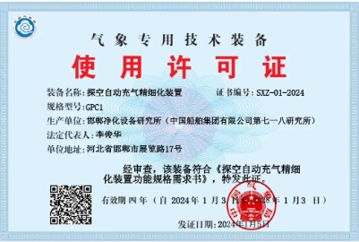 日前,中國船舶集團七一八所研制生產(chǎn)的GPC1型探空自動充氣精細化裝置,成功獲得中國氣象局頒發(fā)的氣象專用技術(shù)裝備使用許可證,成為繼GQD1型自動水電解制氫設(shè)備后,第二個獲此證書的裝置,在氣象領(lǐng)域開拓中邁出重要一步。