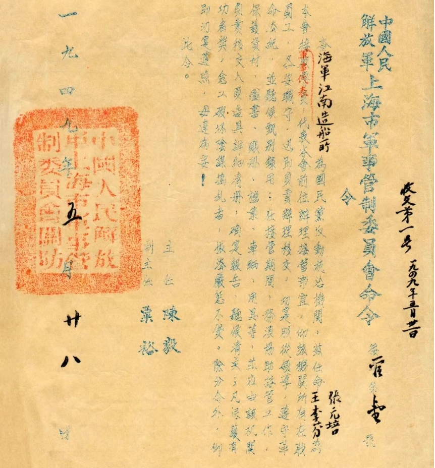 江南之于國家的戰(zhàn)略意義,周恩來曾這樣說過:“江南造船所是中國乃至亞洲最大的軍工企業(yè),要爭取在解放軍進滬時,安全、完整地交給人民?!?949年5月27日,上海解放。第二天上海市軍管會主任陳毅、副主任粟裕簽發(fā)第一號令,宣布接管海軍江南造船所。華東海軍司令員張愛萍來到江南造船所和工人們一起投入搶修造船設施的勞動中,江南造船在廢墟上獲得新生。