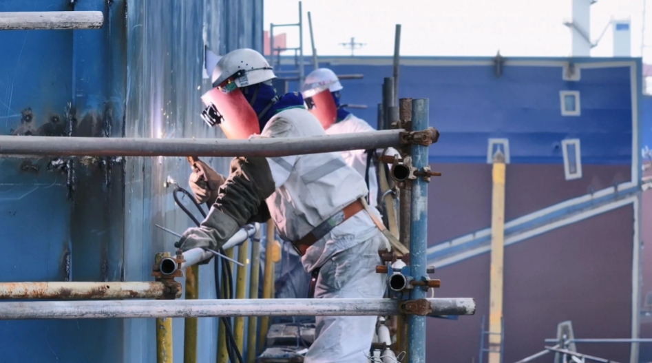 如今的江南造船寬敞明亮、干凈整潔,車間里、船塢內、碼頭上……身著不同顏色工裝的作業(yè)人員在各自崗位上有序地工作。廠區(qū)內懸掛著顯眼的“擔高質量發(fā)展的先行者 當傳統(tǒng)制造業(yè)的顛覆者”標語,以造船界優(yōu)秀前輩命名的廠區(qū)道路兩旁懸掛著江南造船科創(chuàng)大會的優(yōu)秀獲獎者們的海報,新舊交替的一代代造船界前輩激勵著每一位江南人不斷向前。