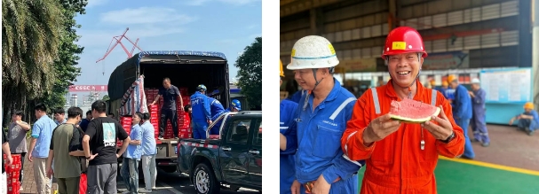 廣船國際始終將員工身心健康與安全生產(chǎn)放在首位,用科學(xué)調(diào)度、貼心保障的“組合拳”,撐起“清涼保護傘”。該公司向全體工會會員發(fā)放慰問清涼飲料,做好防暑降溫工作,保障員工健康;所屬文沖修造常態(tài)化開展“送清涼”活動,各部門自發(fā)熬煮糖水、派發(fā)西瓜,讓“清涼”直抵崗位、暖到心間。