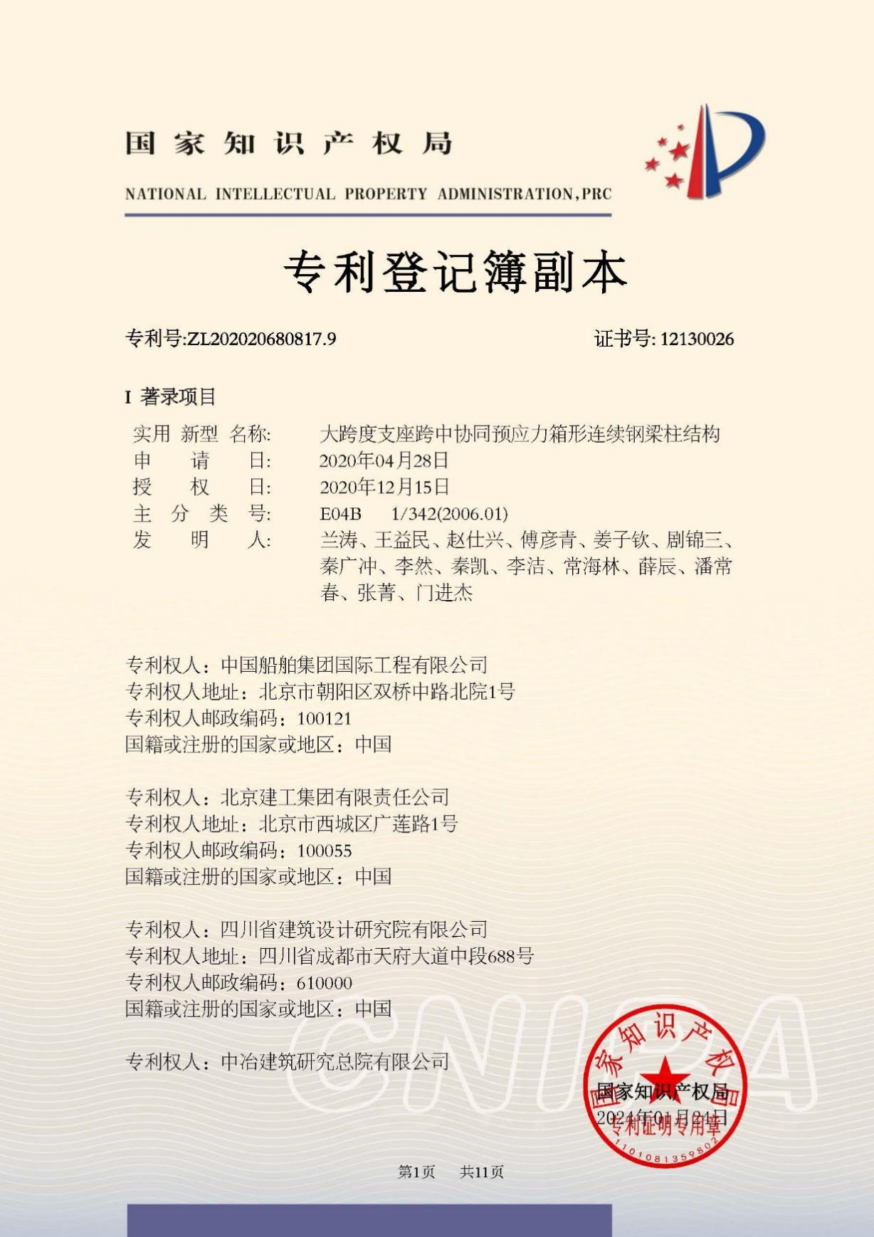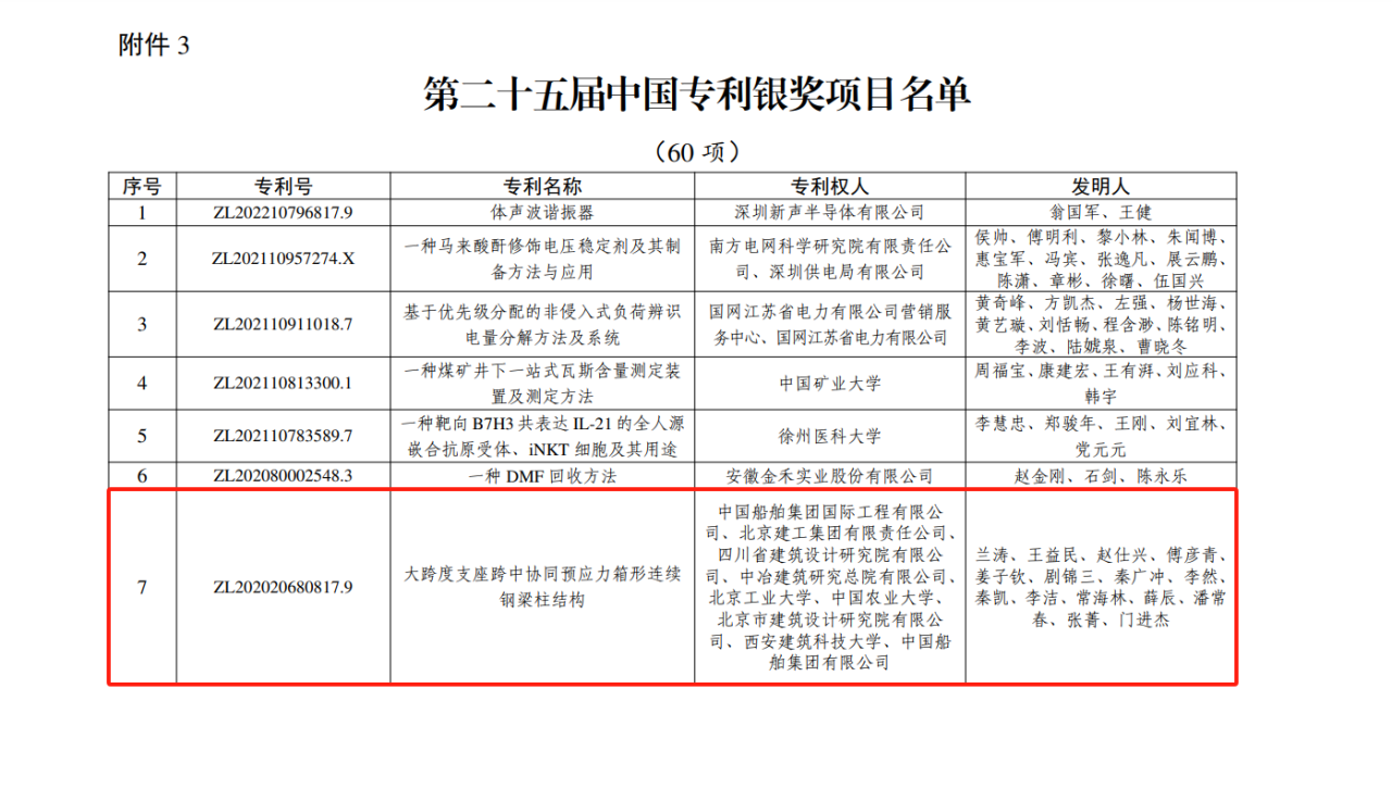 今年6月,國家知識(shí)產(chǎn)權(quán)局公布第二十五屆中國專利獎(jiǎng)授獎(jiǎng)決定,由中船集團(tuán)旗下中船國際工程主導(dǎo)申報(bào)的專利《大跨度支座跨中協(xié)同預(yù)應(yīng)力箱形連續(xù)鋼梁柱結(jié)構(gòu)》(專利號:ZL202020680817.9)榮獲本屆中國專利銀獎(jiǎng)。該獎(jiǎng)項(xiàng)由國家知識(shí)產(chǎn)權(quán)局與世界知識(shí)產(chǎn)權(quán)組織聯(lián)合設(shè)立,是我國專利領(lǐng)域的最高榮譽(yù)。今天,讓我們走進(jìn)中船國際工程鋼結(jié)構(gòu)工程設(shè)計(jì)與研發(fā)團(tuán)隊(duì),聆聽他們的奮斗故事。