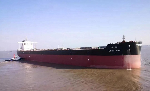????4月23日,中國船舶集團旗下外高橋造船為美國福茂集團建造的21萬噸散貨船“隆梅”號簽字交付。“隆梅”號長299.88米,型寬50米,型深25.2米,設計吃水16.1米,滿足國際海事組織(IMO)TIER III 排放標準和散貨船、油船協調共同結構規范(HCSR),并安裝了脫硫裝置,入級美國船級社。