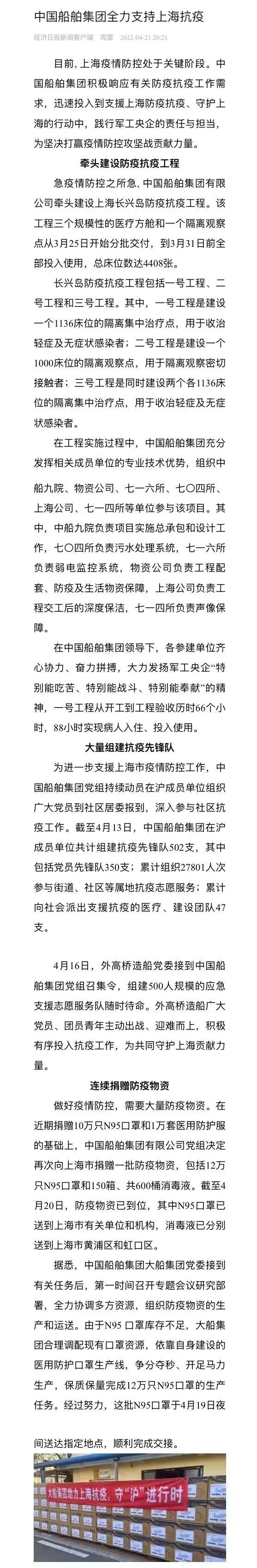 中國船舶集團積極抗疫,同心守“滬”引關注