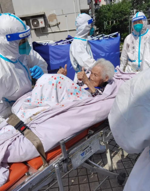 “我們是穿著防護(hù)服進(jìn)去的,突然看到這么多‘大白’,老人們不免有些緊張,問的最多的就是‘去哪里’。隨著我們一趟趟幫著老人下樓、上車,老人們開始逐漸信任我們。因?yàn)檗D(zhuǎn)運(yùn)的部分老人中存在核酸異常的情況,有些老人還會(huì)時(shí)不時(shí)關(guān)照我們要注意防護(hù)。幫他們送上救護(hù)車時(shí),老人還和我們連聲表示感謝。”田雪明說(shuō)道。
