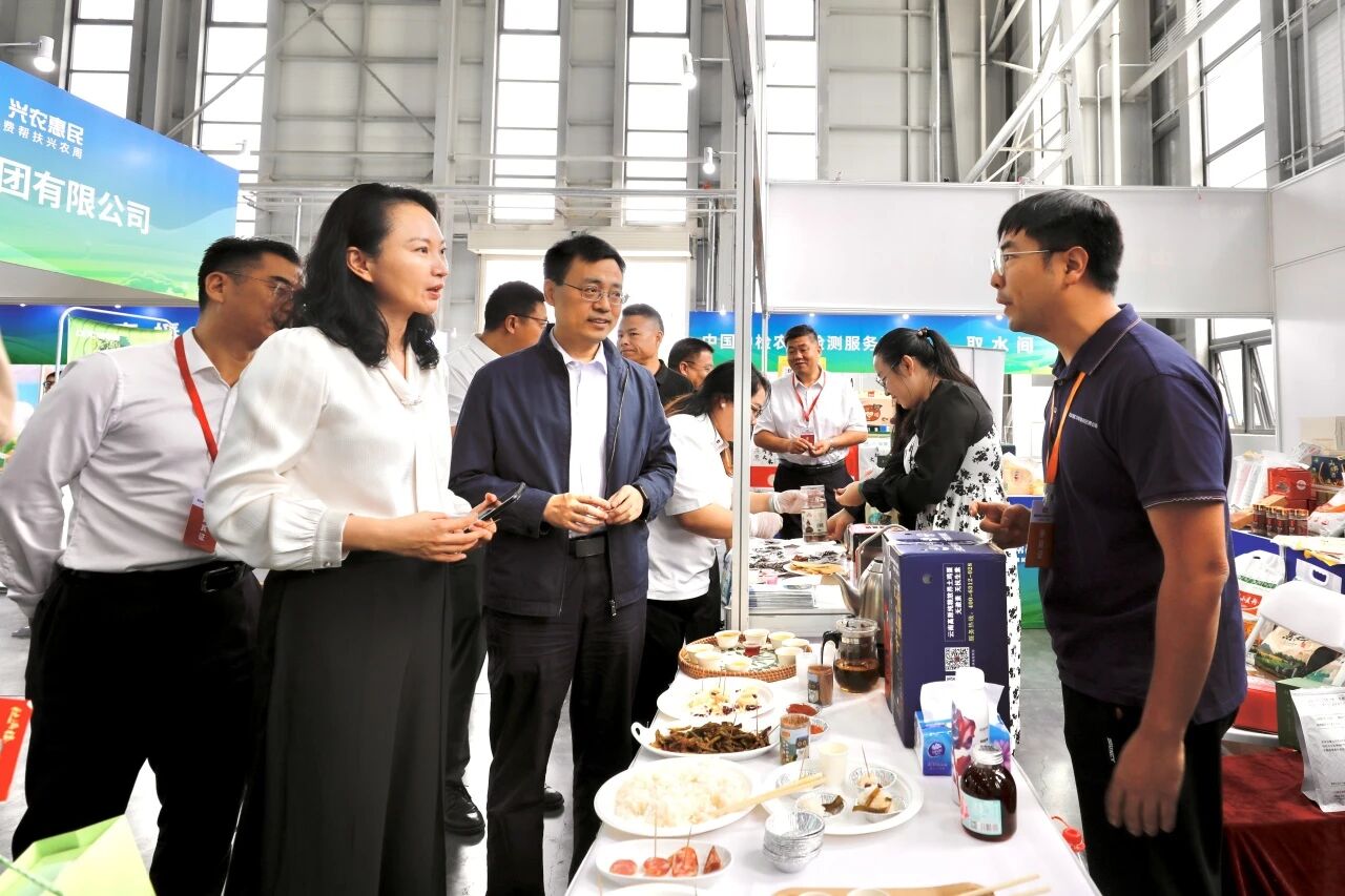 國務院國資委秘書長莊樹新、國務院國資委社會責任局局長李軍、農業農村部區域協作促進司(革命老區工作辦公室)司長(主任)李富君等領導來到中船集團展區,詢問了解集團公司定點幫扶的進展情況及特色農產品相關信息。